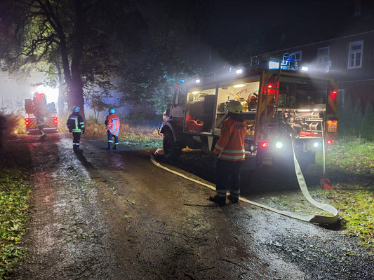 Eigentlich hätte man gar keine Nebelmaschine gebraucht, als am vergangenen Dienstagabend (07.10.2025) die alljährliche Zugübung der Feuerwehren Clausthal-Zellerfeld und Riefensbeek-Kamschlacken am Marienschacht stattfand. Bei dichtem Nebel rückten die Einsatzfahrzeuge aus den Feuerwachen aus, um ein angenommenes Schadenfeuer in einem Gebäude zu bekämpfen. Da der Löschwasservorat der eingesetzten Tanklöschfahrzeuge nur eine begrenzte Kapazität hat, war eine ausreichende Wasserversorgung sicherzustellen. Hierzu musste das Wasser vom Campus der TU Clausthal über eine Schlauchleitung zum Marienschacht transportiert werden. In der Zwischenzeit lief an der Einsatzstelle sowohl die Brandbekämpfung als auch die Personenrettung auf Hochtouren. Dabei waren Trupps unter Atemschutz von Clausthal-Zellerfeld und Riefensbeek-Kamschlacken gemischt eingesetzt.